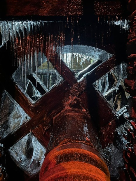 Dieses vereiste Wasserrad fotographierte kürzlich Toni Hippmann am Frohnauer Hammer. Eines der Wasserräder ist dort momentan ein Kunstwerk aus Eis.